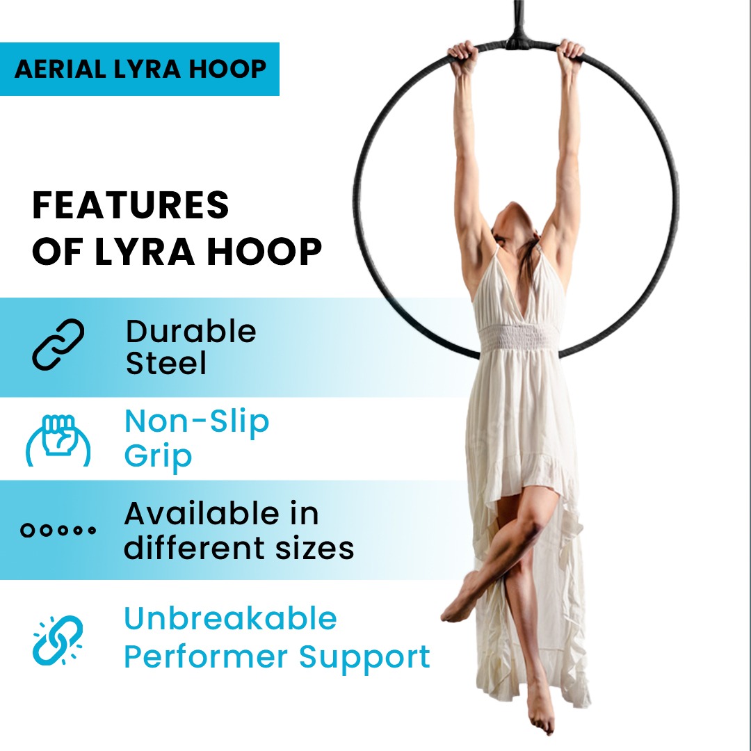 Professional Aerial Hoop, also known as Aerial Lyra, is a special device used in aerial dance and aerial acrobatics. Aerial Hoop is performed by dancers, acrobats and circus artists who demonstrate their strength, flexibility and artistry in the air.