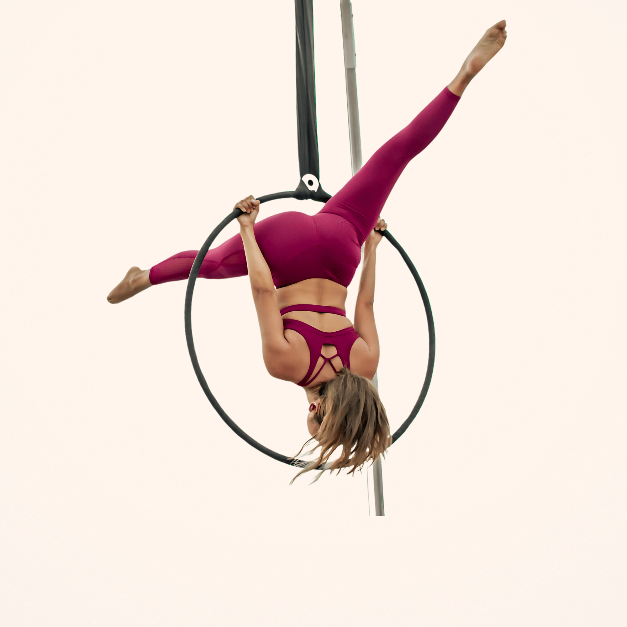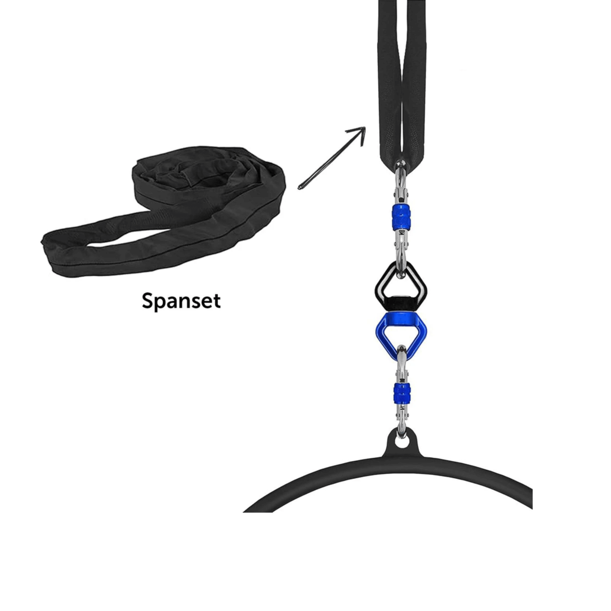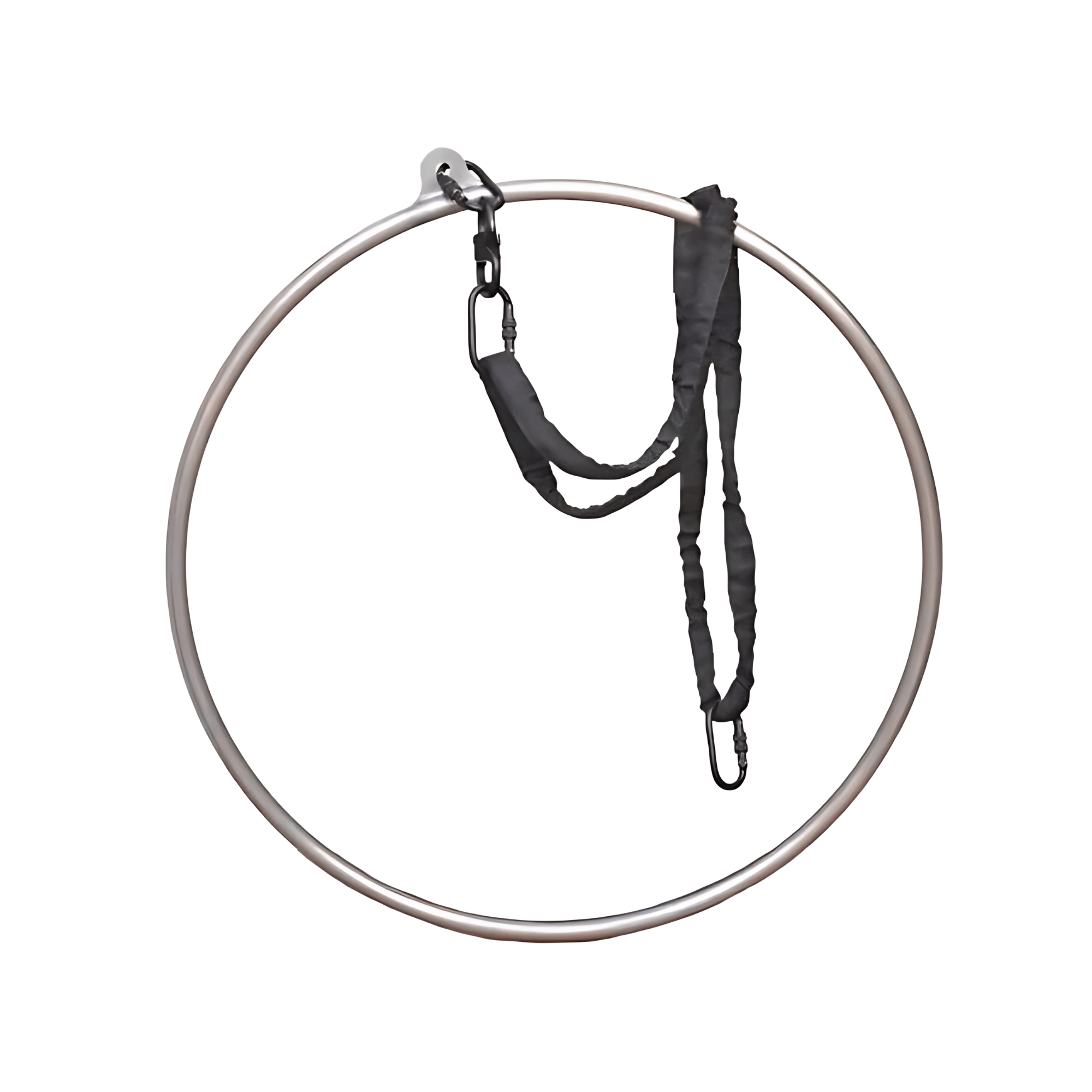 If you do not want the Aerial Hoop to spin, you need to connect your strop/rope to your anchor point with a carabiner. We recommend this when you want to keep a hoop rigged from one point facing an audience.
