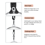 If you rig it as a 2-point hoop, you can choose how far apart your points are which will change how the hoop feels and moves. This allows the user to play and experiment or the teacher to adjust for different students.